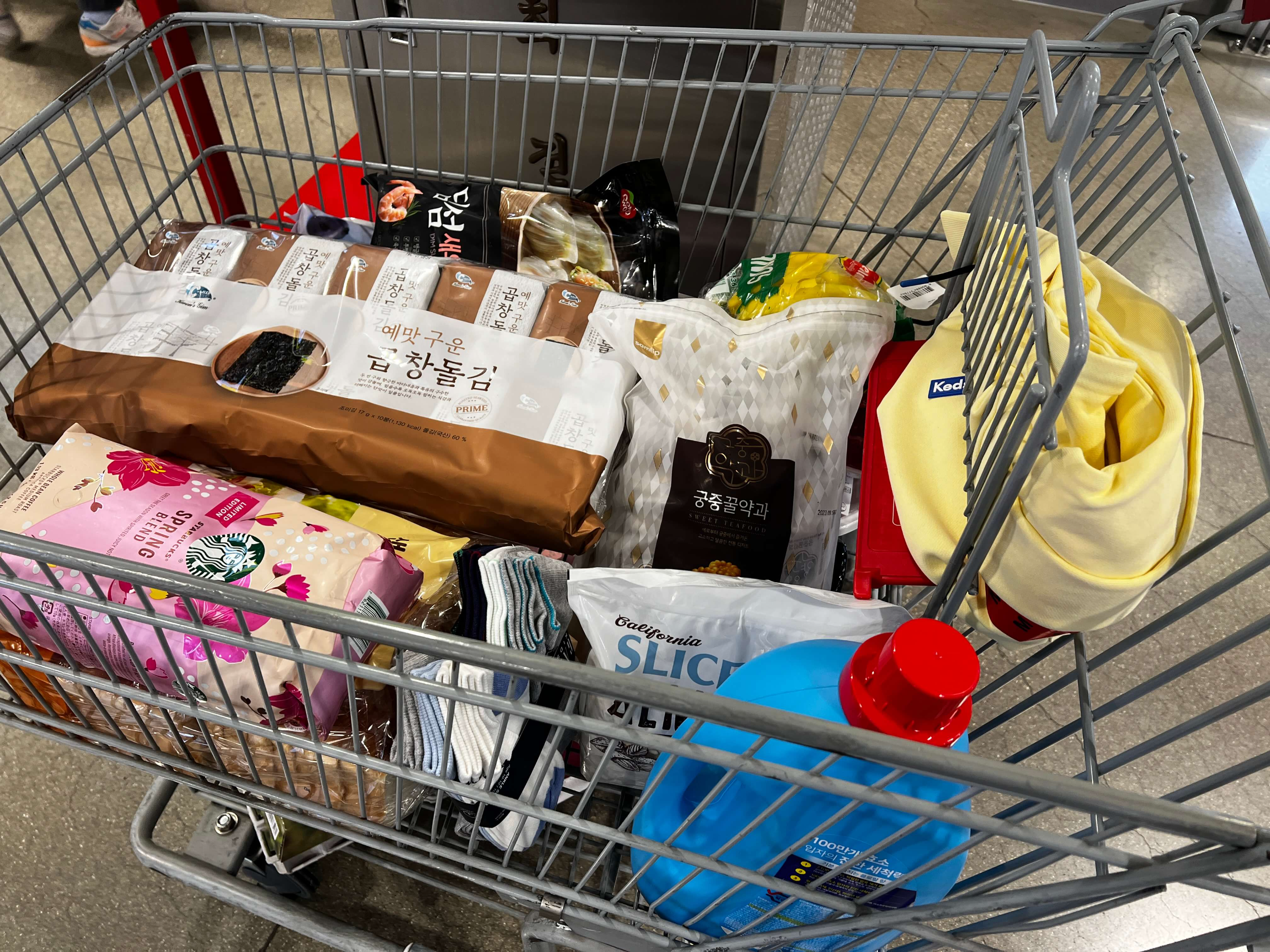 진한 세척력을 자랑하는 진한겔리큐와 늘 냉동실에 쟁여두고 먹는 4봉짜리 샌드위치 식빵에 똑 떨어진 커피의 자리를 채워줄 스타벅스 커피도 구매했습니다. 스타벅스 스프링 블렌드는 봄 시즌에만 나오는 한정품인데 의외로 먹어보니 맛이 좋더라고요. 매년 봄 시즌에는 구매하는 것 같습니다.