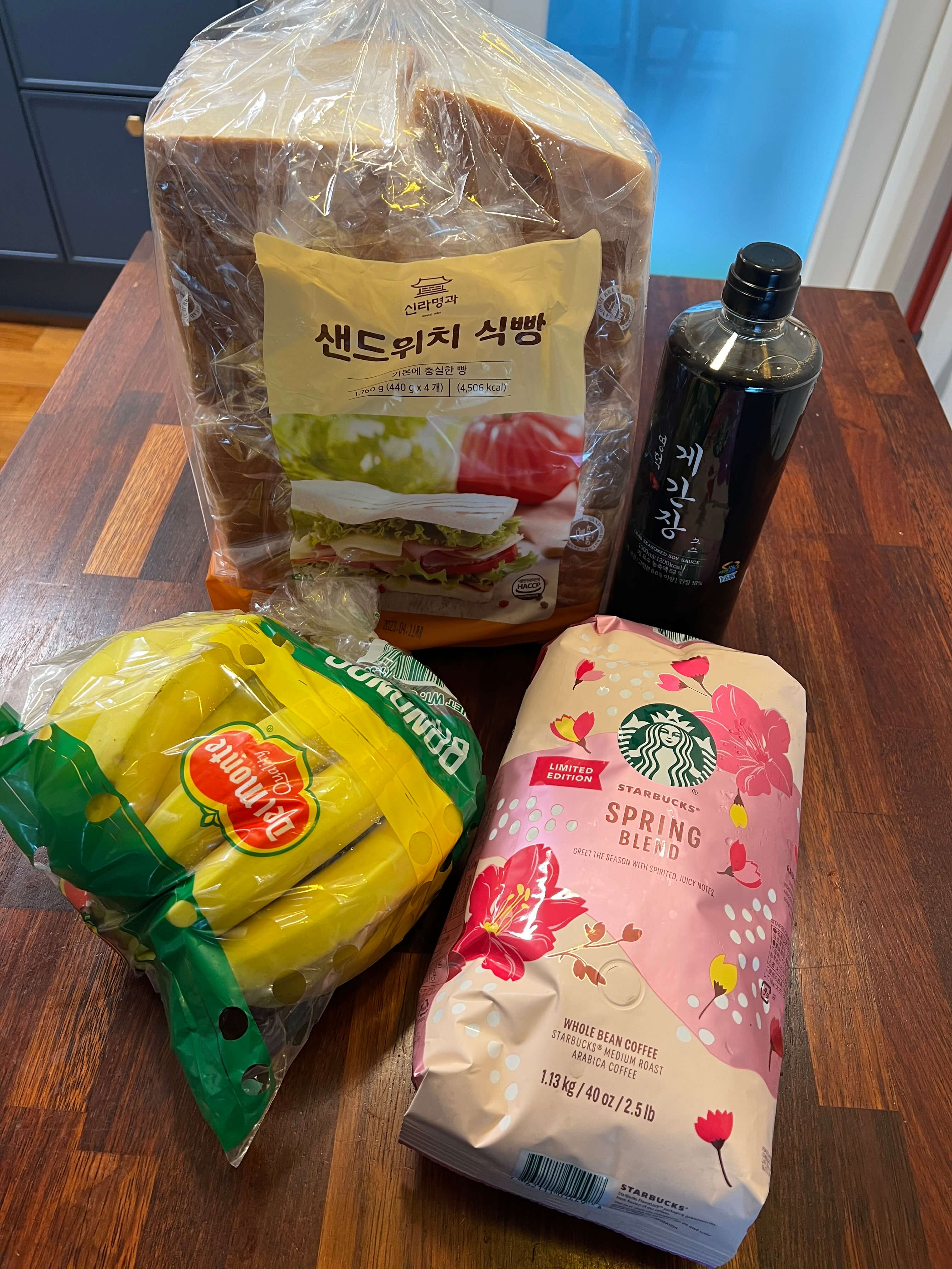 진한 세척력을 자랑하는 진한겔리큐와 늘 냉동실에 쟁여두고 먹는 4봉짜리 샌드위치 식빵에 똑 떨어진 커피의 자리를 채워줄 스타벅스 커피도 구매했습니다. 스타벅스 스프링 블렌드는 봄 시즌에만 나오는 한정품인데 의외로 먹어보니 맛이 좋더라고요. 매년 봄 시즌에는 구매하는 것 같습니다.
