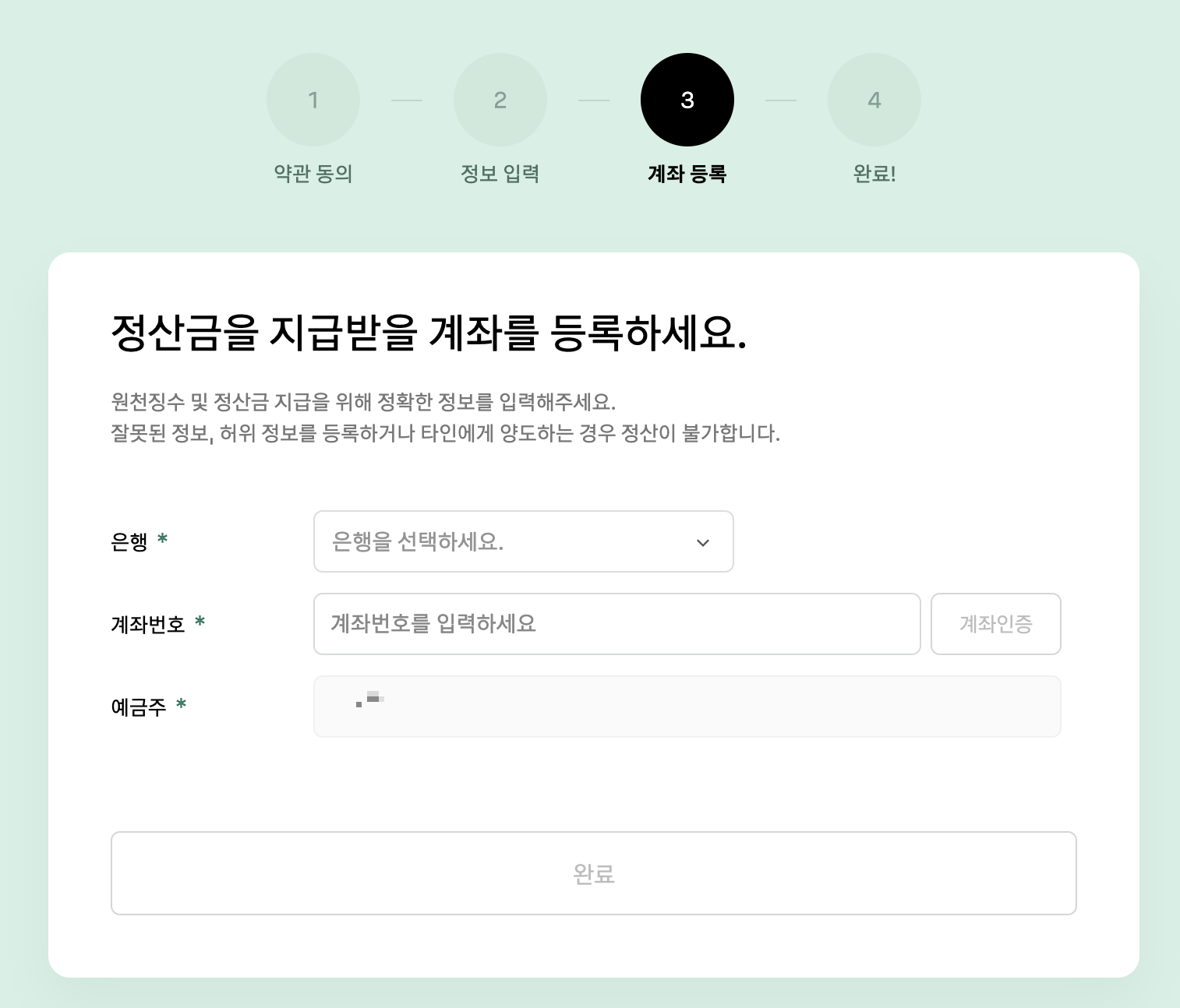 창작자 정산센터에서 설정