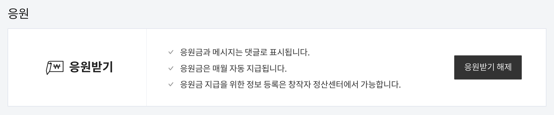 전세계인을 대상으로 하는 유튜브에서는 종종 활용되는 기능인 것 같은데, 점유율이 네이버 블로그보다도 적은 티스토리 블로그에 창작자를 직접적인 금전으로 응원하는 사례가 많이 나올 수 있을지는 미지수이지만 일단 설정은 해 보았습니다.