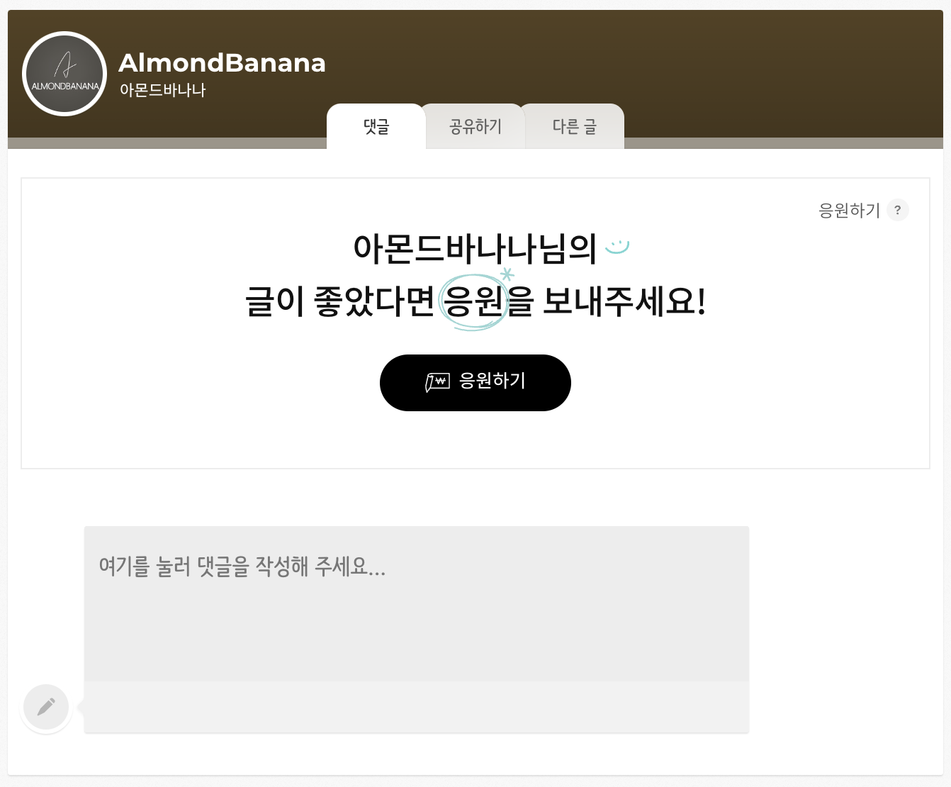 얼마나 실효성이 있을지는 모르겠지만 일단 한번 설정해본 티스토리 응원하기 기능이었습니다. 설정 안해두는 것 보다는 나으니 설정 가능하다면 한번쯤 설정해두셔도 괜찮을 것 같습니다만 댓글쓰기 기능이 아예 없이 운영되는 티스토리에는 별 소용은 없을 것 같기는 합니다.