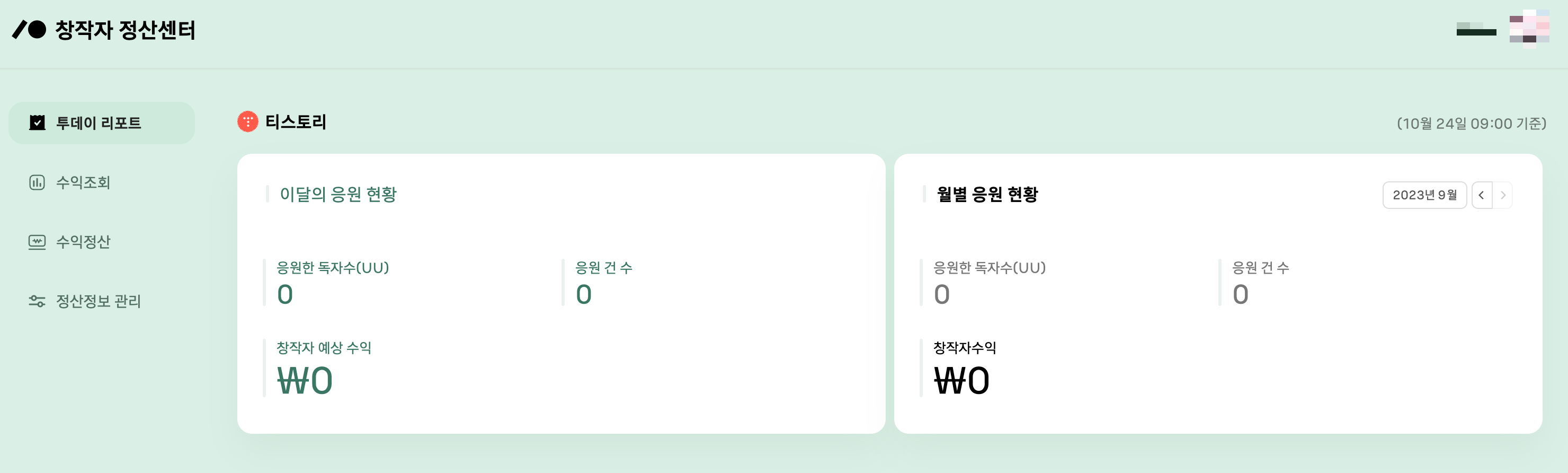 응원하기 기능을 통해 얼마나 수익을 올릴 수 있을지는 모르겠지만 일단 수익의 통로인 계좌번호를 한치의 오차없이 작성해줍니다. 계좌번호까지 작성하고 나면 티스토리 응원하기 기능 설정은 마무리가 됩니다. 설정을 마치고 나면 아래의 화면처럼 리포트를 확인할 수 있습니다. 이달의 응원현황이나 월별 응원현황 등등을 확인할 수 있는데 수익이 생길까요? 잘 모르겠네요.