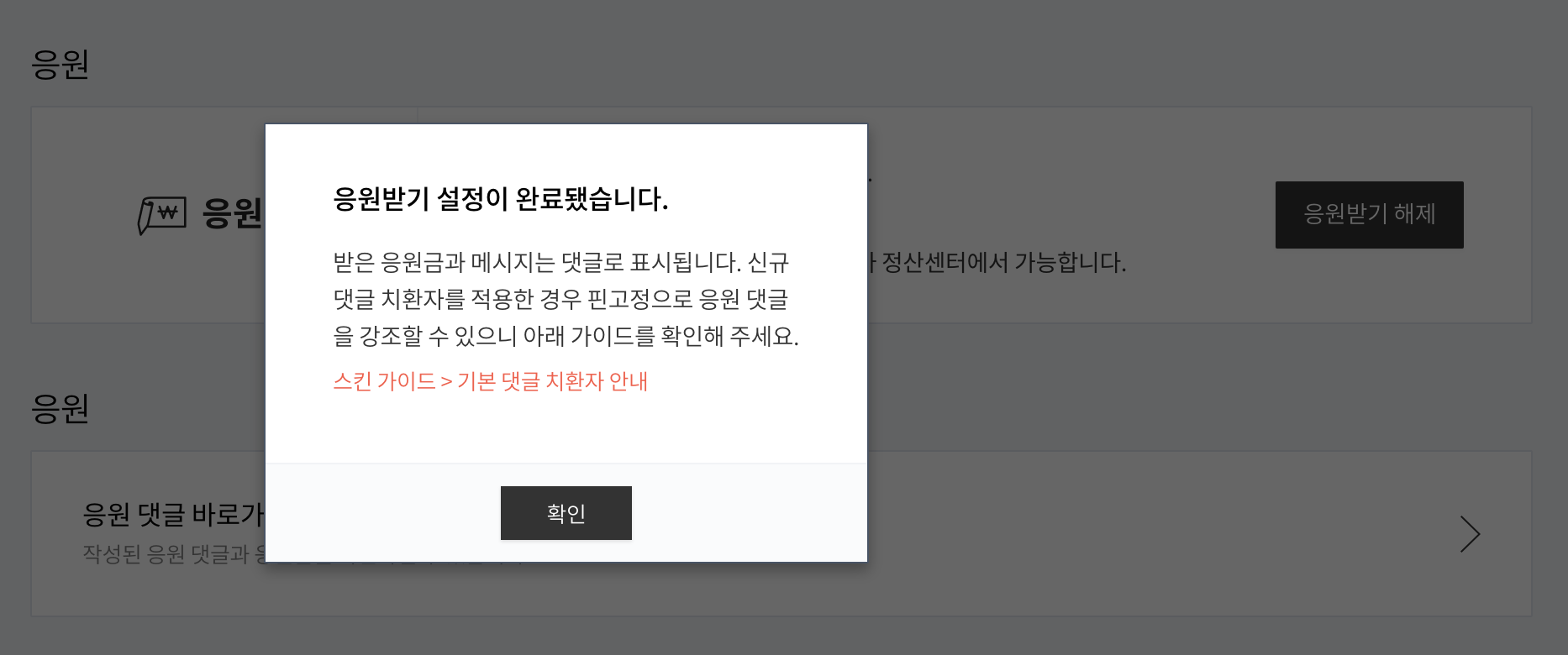 응원받기 설정완료