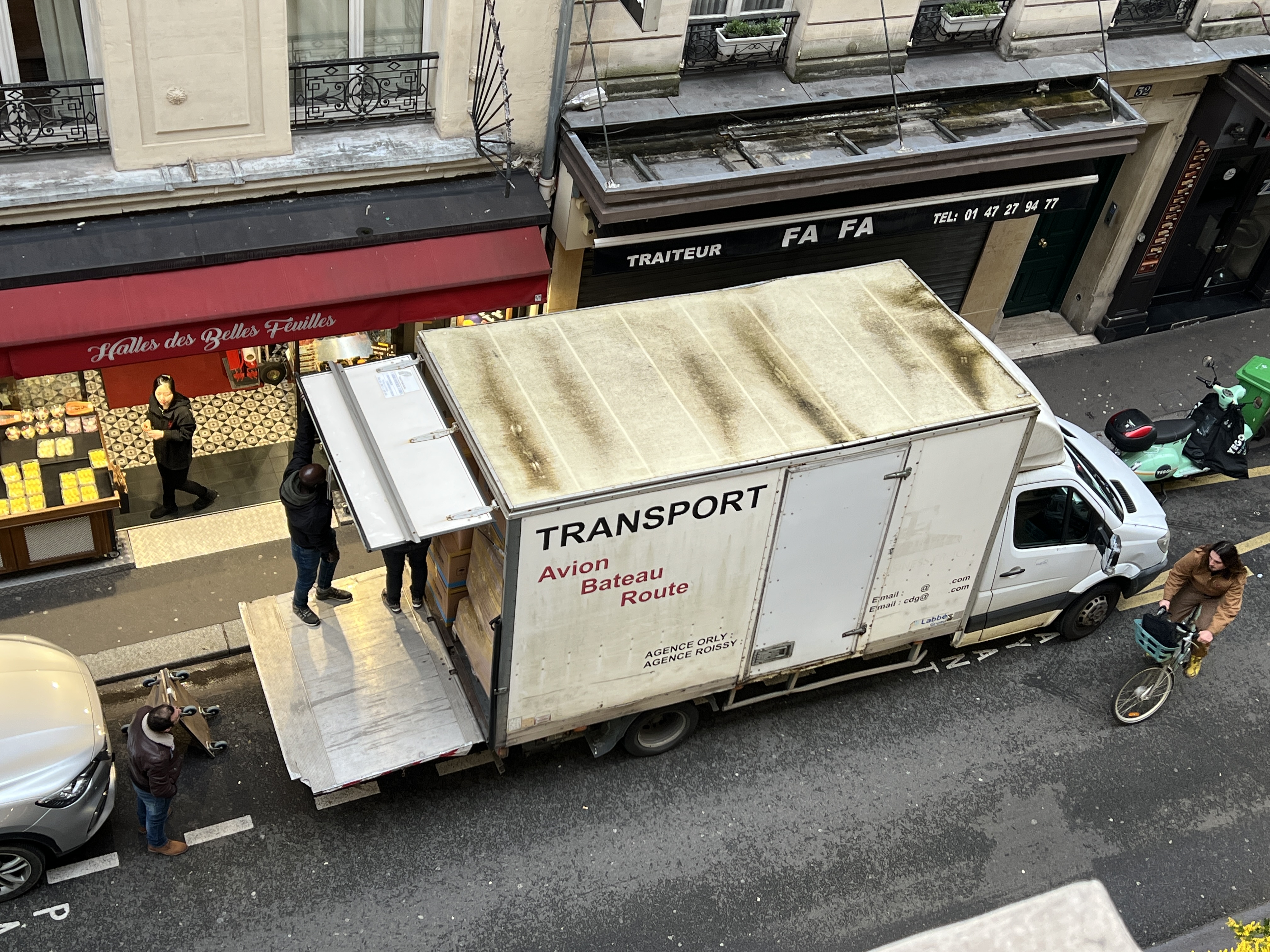파리에 도착해서 딱 6일 후에 이삿짐을 받았다. 2월 3일에 이삿짐을 보냈는데 통관 + 이동시간 포함하여 약 1주일 남짓의 시간이 걸렸다. 한국에서처럼 엘레베이터가 크거나 집 앞의 길이 넓지 않은지라 이삿짐은 어떻게 올라오나 걱정했지만 이삿짐은 잘 이동했다.
