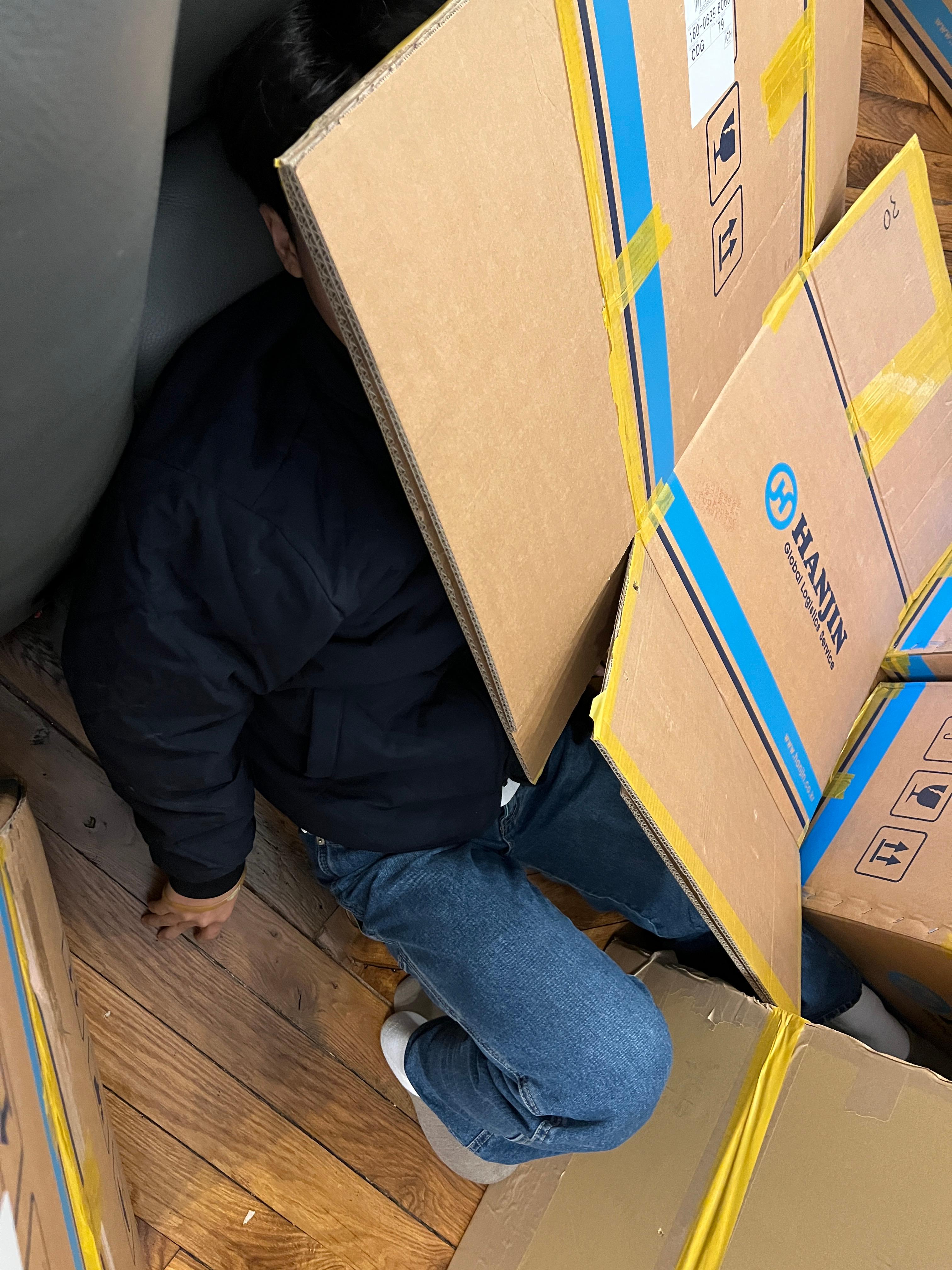 극적으로 하루 전날 학교에 배정된 둘째가 학교에 간 후, 아직 학교 배정이 되지 않은 큰아이는 이삿짐 푸는 것을 도와주다가 지쳐서 쓰러졌다. 물밀듯 박스가 올라오는데 풀러도 풀러도 끝이 없을 것 같지만 이삿짐 업체 직원분들이 있을 때 풀러야 완충제며 박스를 처리할 수 있어 쉬지않고 박스를 계속 풀렀다.