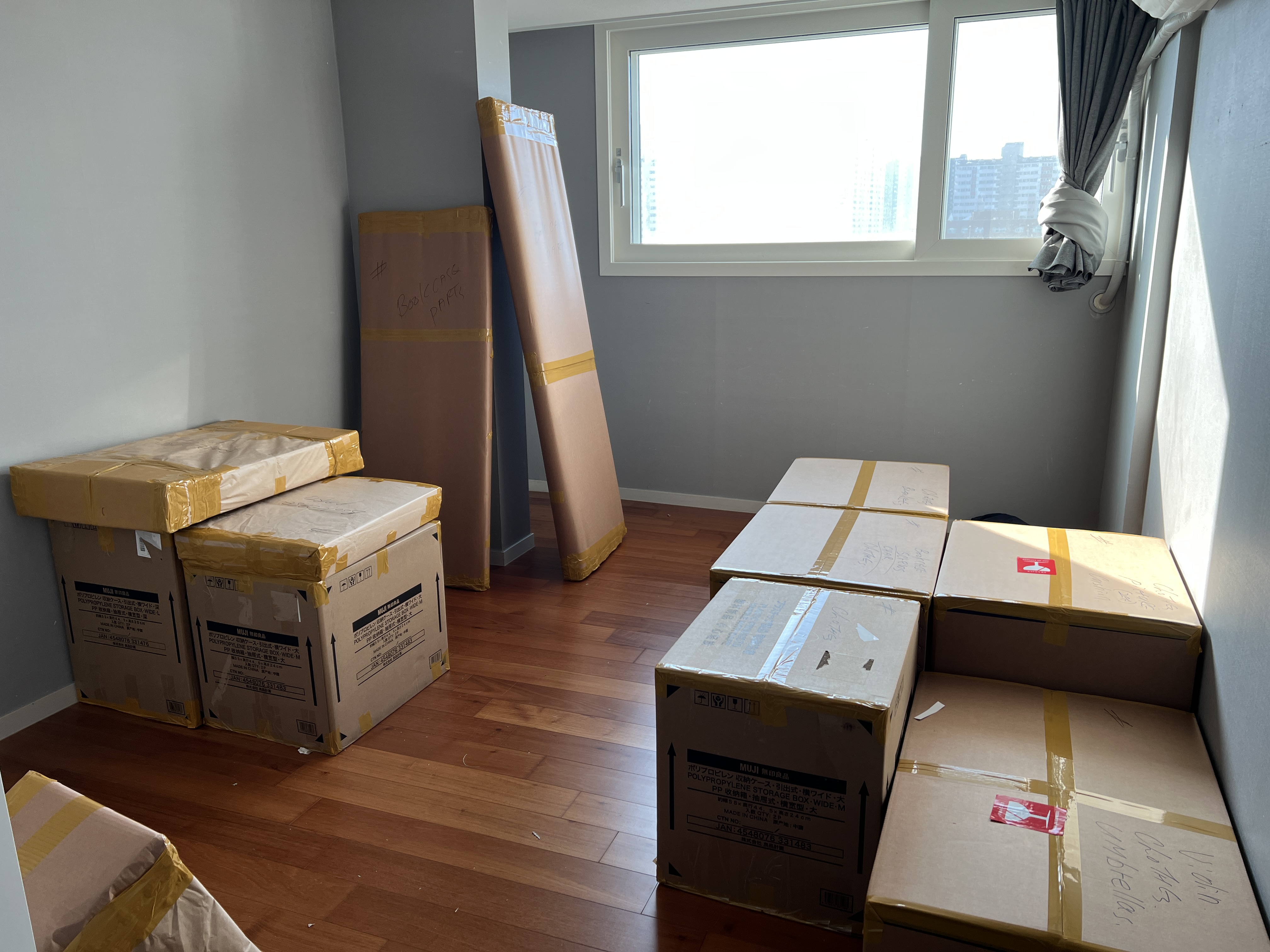 이전부터 큰 짐은 당근이나 나눔을 통해 정리했기에 꼭 가져갈 물건들만 정리해두었다. 장농이 사라지니 물건이 오갈 곳이 없어 바닥에 덩그러니 놓여있다. 가져갈 물건만 정리한다고 했는데도 물건이 많아 걱정이 많았는데 결과적으로는 잘 가기는 갔다.