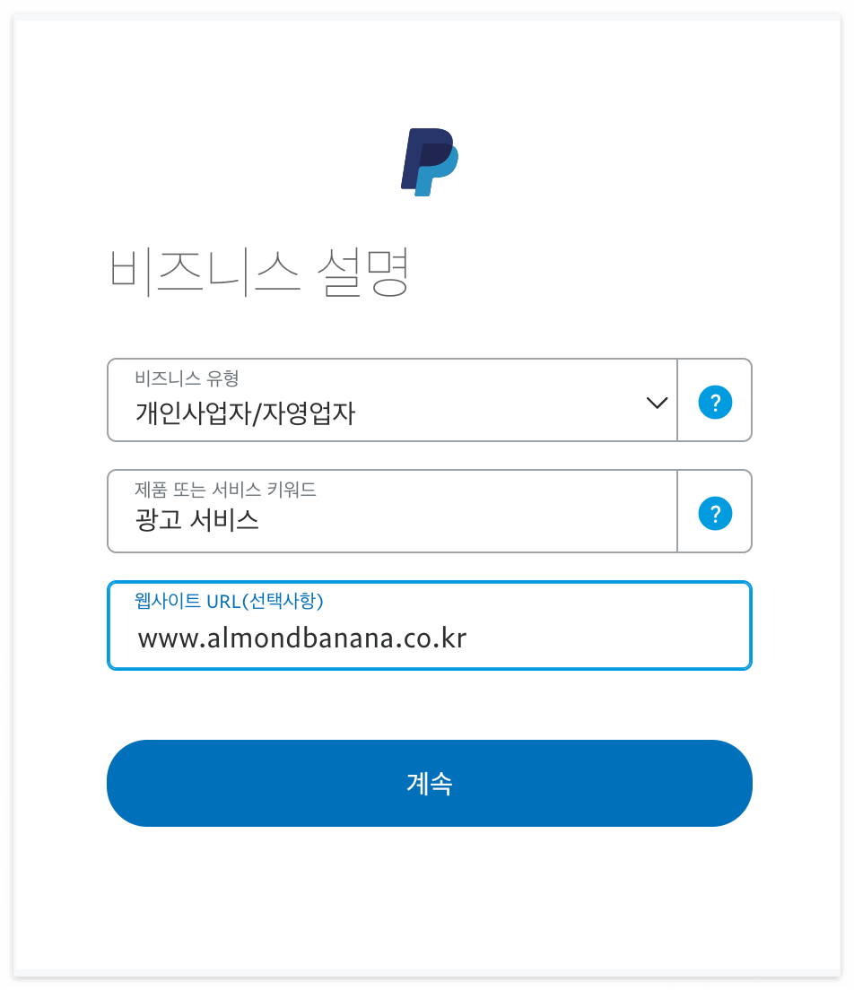 아래와 같이 비즈니스 설명과 개인정보 몇 가지를 넣어주면 바로 전환이 됩니다. 저는 비즈니스 유형과 서비스 키워드는 적당히 넣어주었고, 웹사이트는 선택사항이지만 제 블로그 주소를 넣어주었습니다 :D