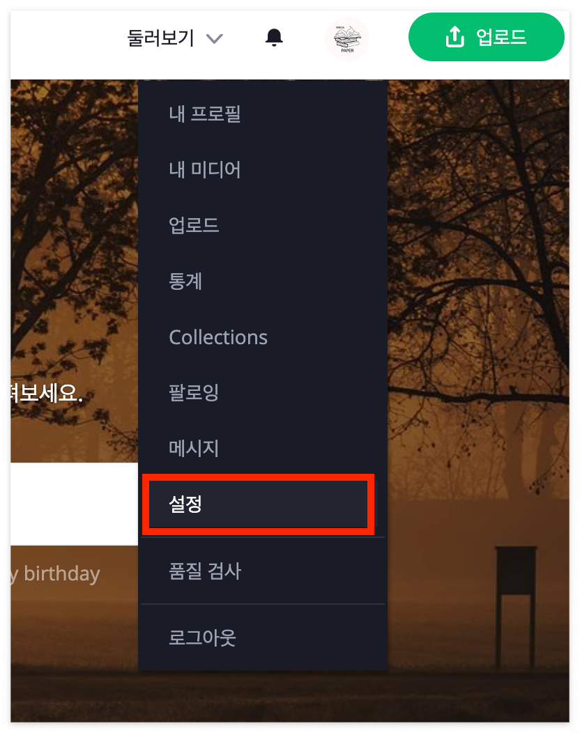 이제 PayPal에서 확인한 PayPal 판매자 ID를 복사하여 픽사베이로 돌아갑니다. 픽사베이 오른쪽 상단 내 프로필 아이콘을 누르면 '설정'탭이 나옵니다. 클릭하여 들어가면 하단에 '옵션'란이 있고 여기에 '기부받기 위한 페이팔 주소 또는 Merchant ID' 입력란이 있습니다.