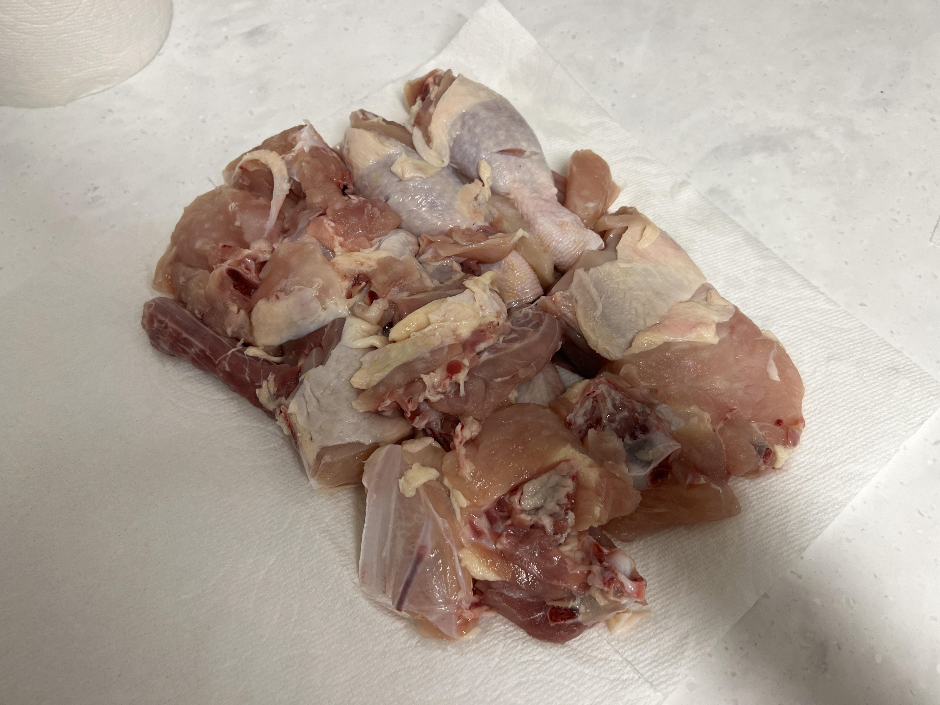 코스트코에 간 김에 한팩 집어온 절단닭을 손질해보았습니다. 기름이 있어야 지글지글 맛있기 때문에 거의 지방은 제거하지 않았고 깨끗하게 씻어 칼집 조금 내준 후, 키친타월로 물기만 제거해 주었습니다.