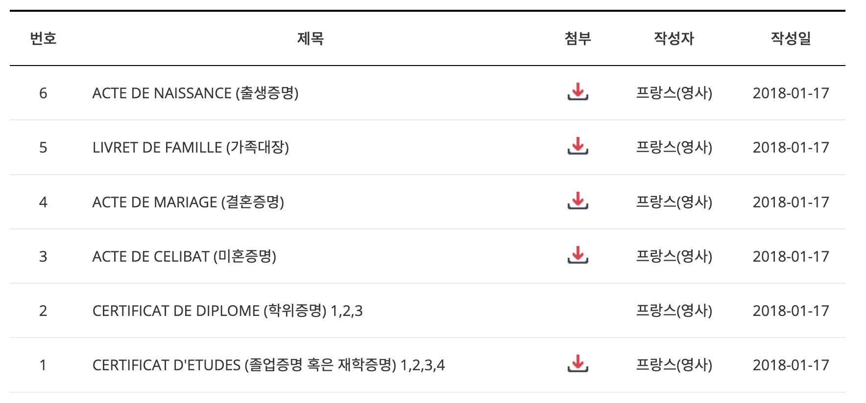 발급받은 서류를 아포스티유 신청한 후, 프랑스 영사관에서 직접 번역하여 공증받는 경우에는 비용이 훨씬 저렴합니다. 공인번역가에게 번역을 맞기는 경우 약 35유로(25년 2월 기준)가 소요됩니다. 프랑스 영사관에서 직접 번역하여 공증받는 경우라면 약 4유로(25년 2월 기준)가 소요되므로 영사관에서 공증받는 것이 훨씬 저렴합니다.