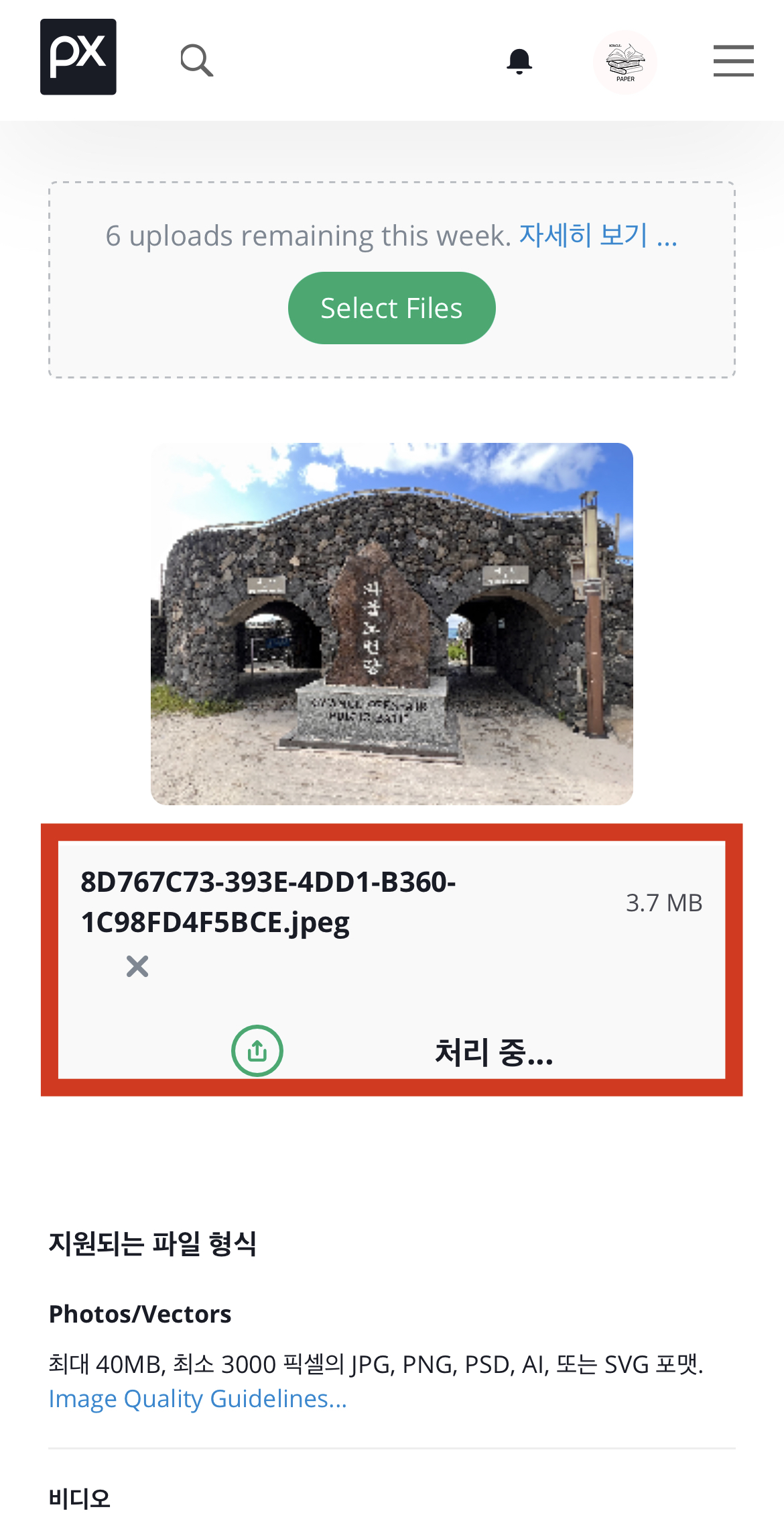 업로드 가능한 파일의 갯수는 하루 10개로 제한되어 있다고 하는데, 일단 저는 하나만 등록해보도록 하겠습니다.