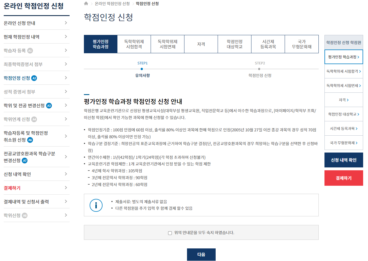 학점은행제 학점인정 신청 | 학점인정 신청완료