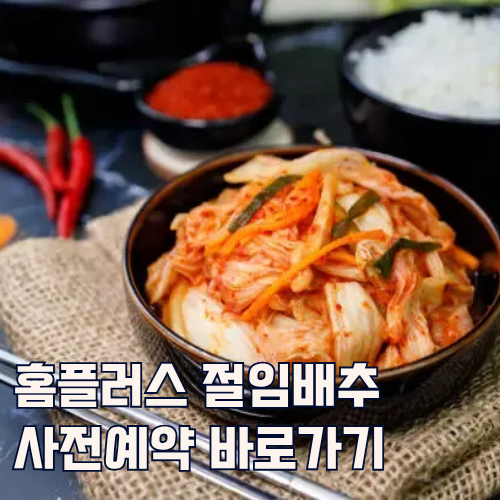 홈플러스는 매년 김장철이 시작되는 10월 중순부터 절임배추 예약을 오픈합니다. 해마다 인기가 높아 예약 시작과 동시에 품절되는 경우도 있으니 서두르세요.