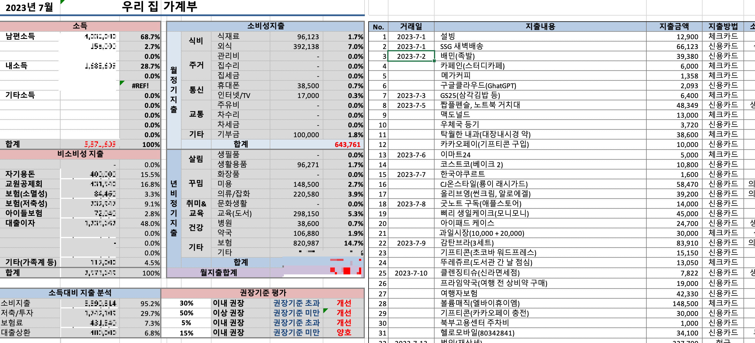 7월의 가계부