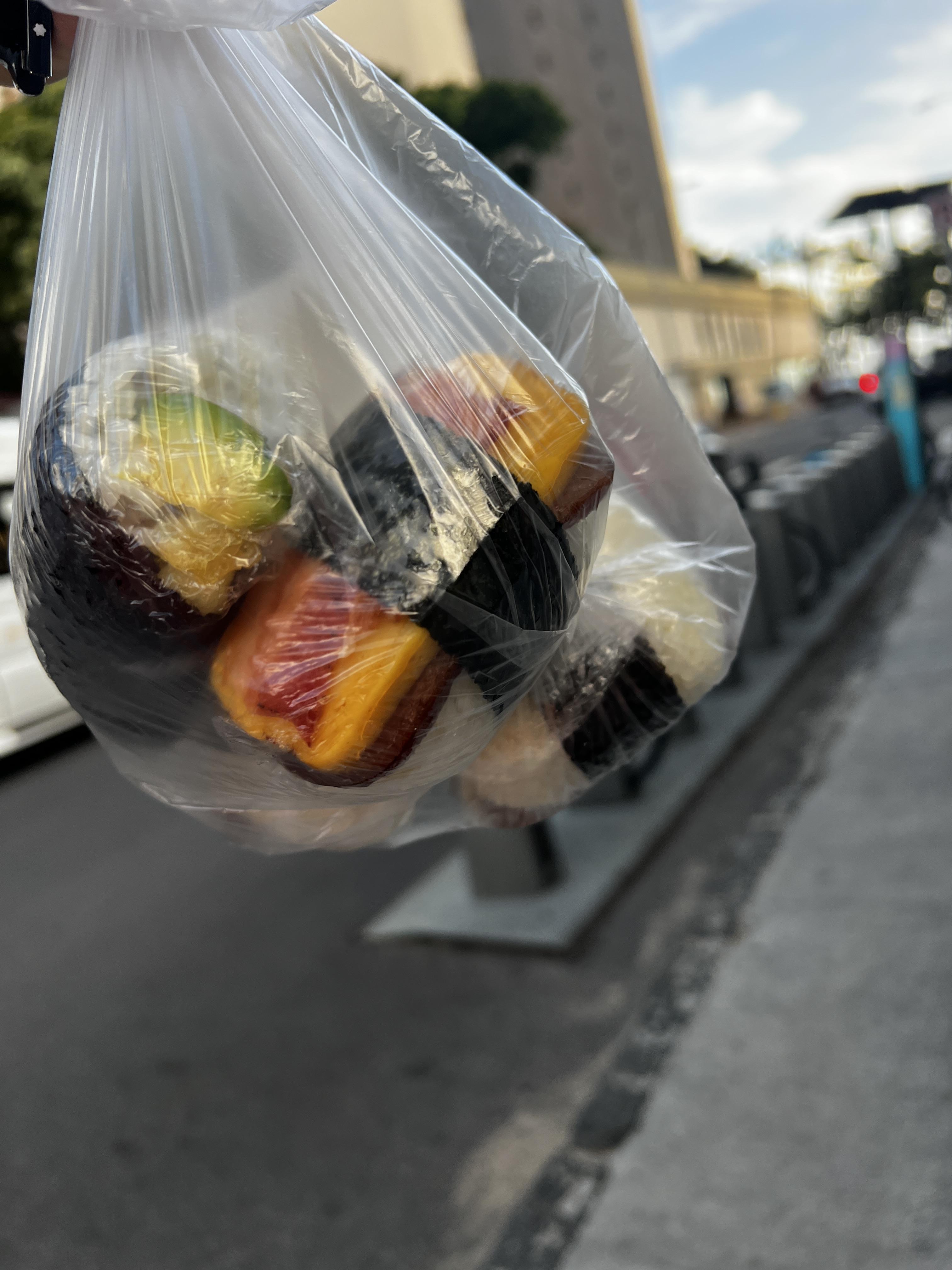 포케를 사가지고 돌아오는 길에 작은 무수비 가게를 발견해서 그냥 한번 들어가 보았습니다. 나중에 알고 보니 여기도 맛집이더라고요. 맛집인 줄은 1도 모르고 들어갔는데 사람들이 참 많이도 구매하길래 홀린 듯 저도 무수비 4개 정도 구매해 봅니다. 한국사람은 밥을 먹어야 되기 때문에 짭조름한 스팸과 밥의 조합을 좋아하지 않을 수 없겠더라고요. 하와이에 있는 동안 이 가게만 3번을 갔던 것 같네요.