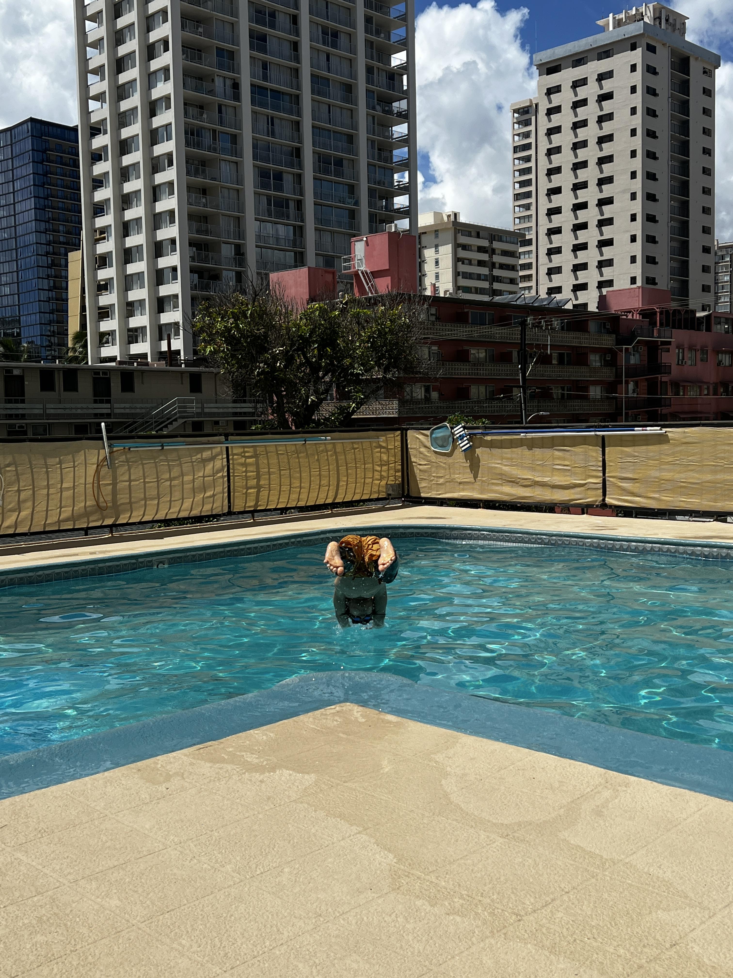 블로우 홀에서 동굴탐험까지 끝나고 돌아왔는데도 여전히 기운이 넘치는 첫째님은 호텔 수영장에 뛰어들어갑니다. 월마트에서 아침에 구입한 작은 바디보드에 적응을 해야 한다며 물속에서 이리저리 타면서 놀더라구요. 둘째님은 여전히 열이 펄펄 나는 중이기에 상비약을 먹고 썬베드에 누워 휴식을 취해봅니다.