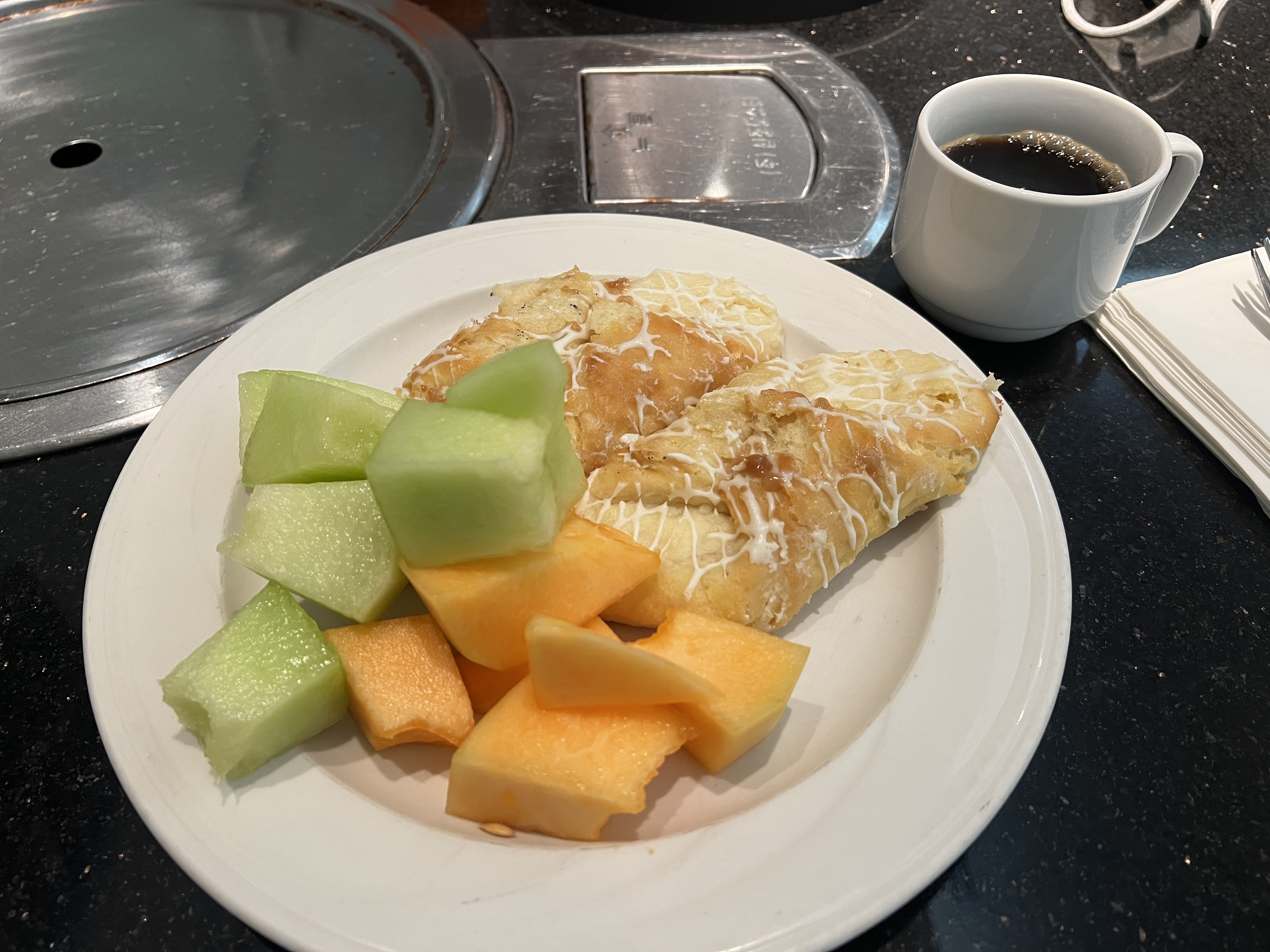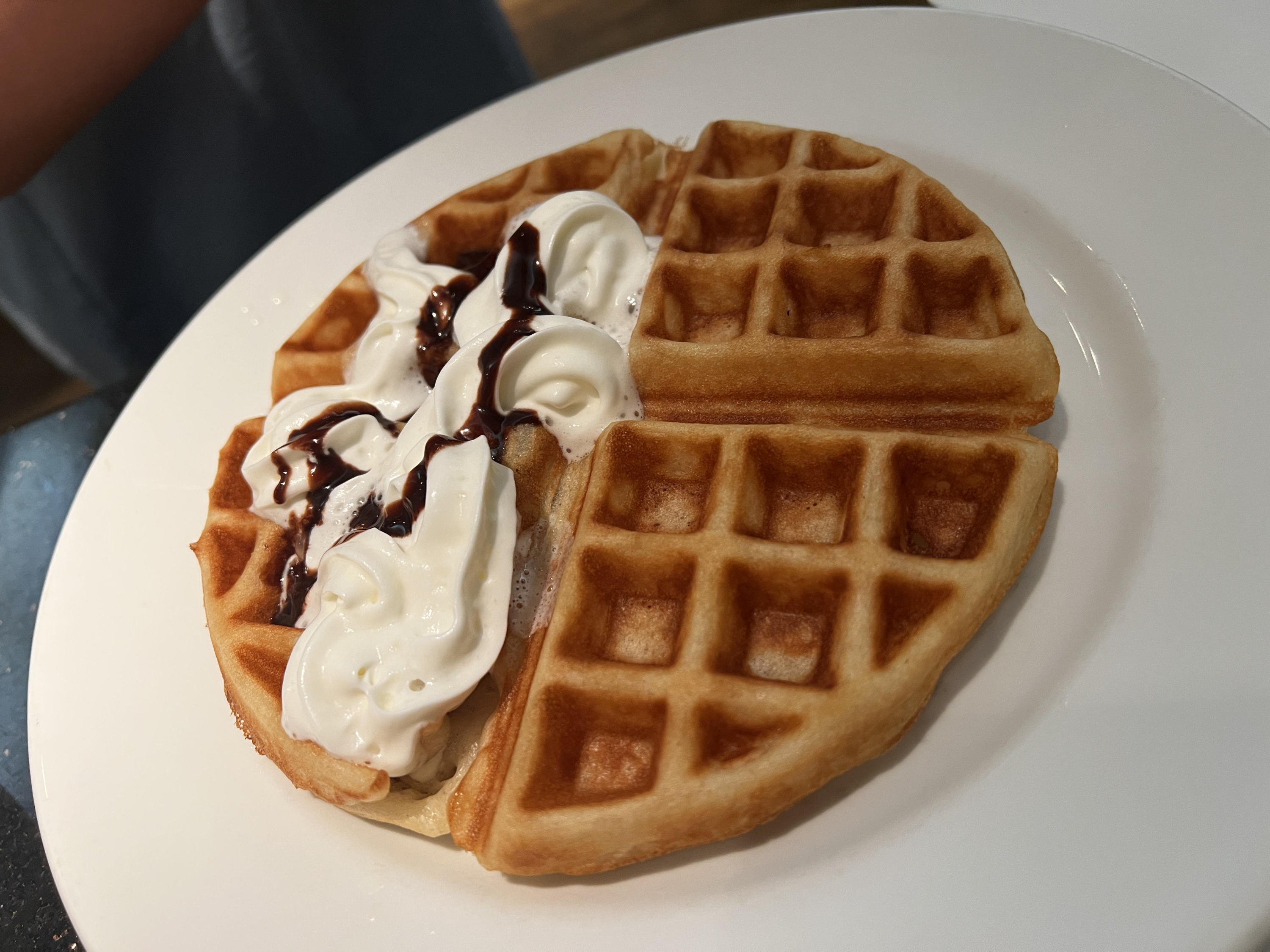 다시 봐도 웃음이 나는 와이키키 리조트에서의 조식은 매일매일 3가지 종류의 과일과 간단한 베이커리, 식빵, 직접 구울 수 있는 와플이 있습니다. 시리얼과 우유, 커피도 준비되어 있고 삶은 계란과 주스도 있기는 한데 삶은 계란은 우리에게 익숙한 그런 느낌은 아니기에 시도는 해보시되 실망하시면 아니됩니다. 와플이 그나마 제일 낫기 때문에 아침마다 와플을 굽는 사람들로 긴 줄이 늘어섭니다. 이날은 열이 거의 내린 둘째님이 와플을 구워왔기에 와플을 한번 먹어봅니다.