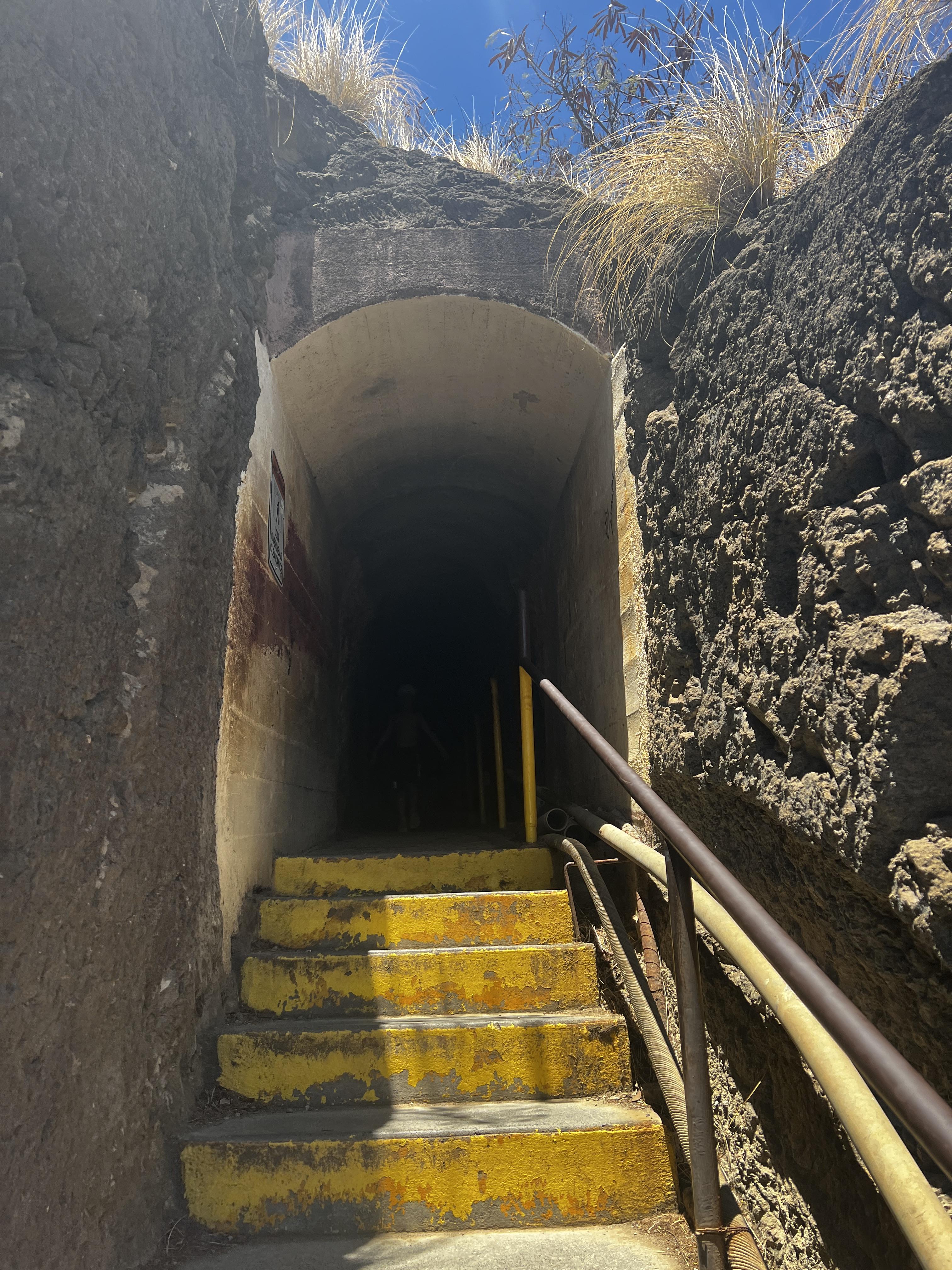 여기서 왼쪽으로 가도 오른쪽으로 가도 정상으로 갈 수는 있습니다. 먼저 간 둘째님이 오른쪽으로 바로 올라가는 바람에 지옥의 99계단을 올라갔는데, 나중에 내려올 때 보니 반대쪽으로 갔어도 계단으로 올라갔어야 하더라구요. 차라리 조금 더 그늘지고 시원했던 오른쪽 길이 나았던 것 같네요. 끝까지 올라가면 너무 숨이 차서 숨이 막히지만 곧 시원한 바람이 불어옵니다. 약간 층고가 낮은 조그마한 공간이 나오는데 나중에 알고보니 총격대(?)라고 하더라구요.