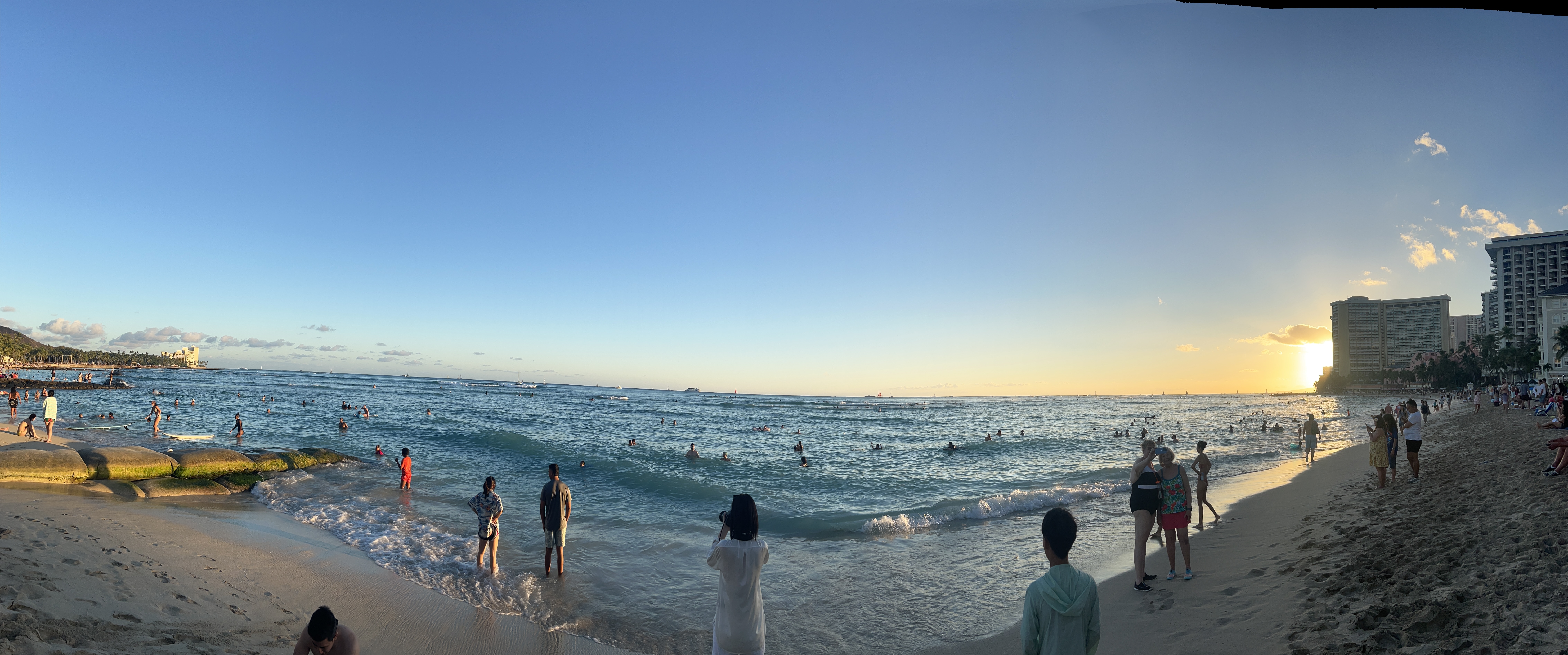 여전히 열이 펄펄 나지만 저녁은 역시 산책이라며 와이키키비치로 나가봅니다. 이전 4일동안 전혀 몰랐는데, 해 지는 풍경이 정말 예쁘더라구요. 좋은 카메라가 있었다면 더 좋았을껄 생각해본 적이 처음이었네요. 예쁜 석양을 온전히 담을 수 없어 아쉬웠던 산책을 마치며 하와이에서의 5일차도 마무리 해 봅니다.