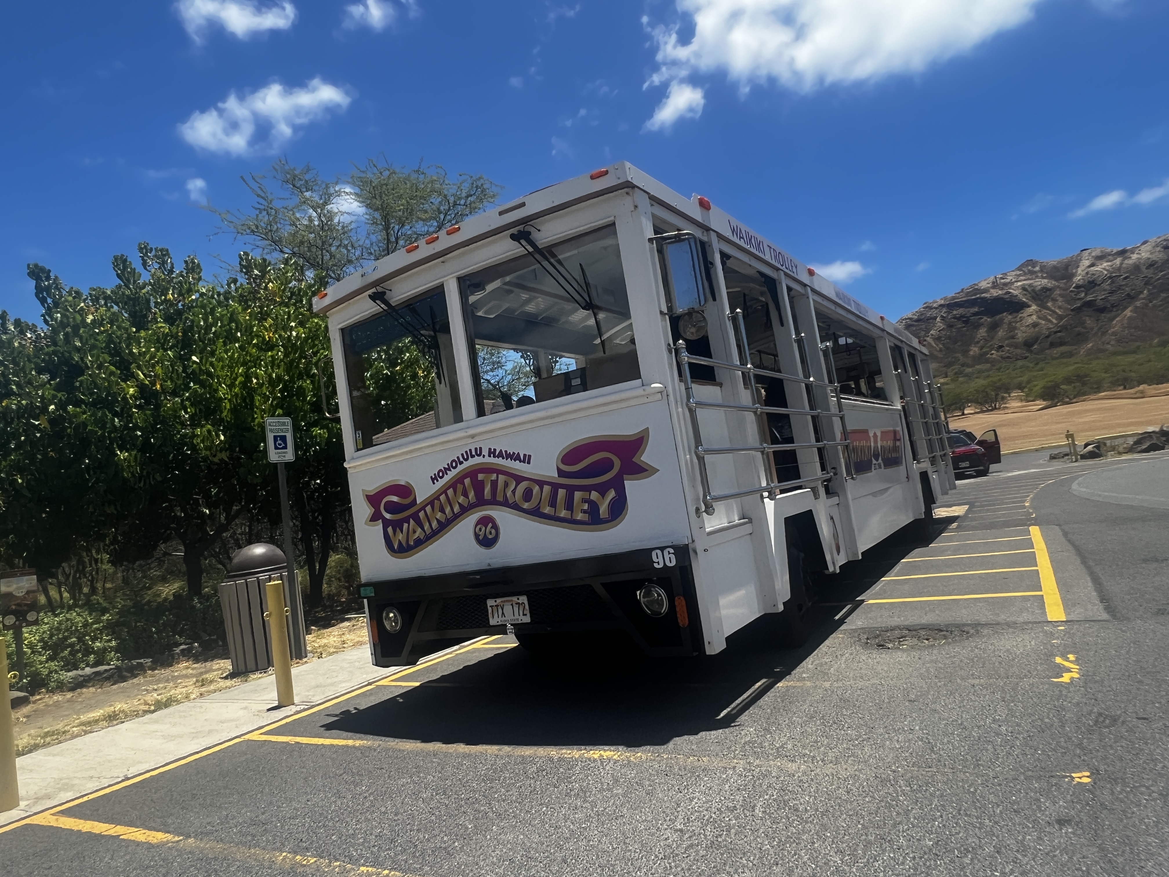 와이키키 트롤리도 다니는데 저희는 렌트를 했기 때문에 트롤리는 한번도 이용하지 못했지만 트롤리를 이용하여 편하게 다이아몬드 헤드까지 올라올 수 있답니다.
