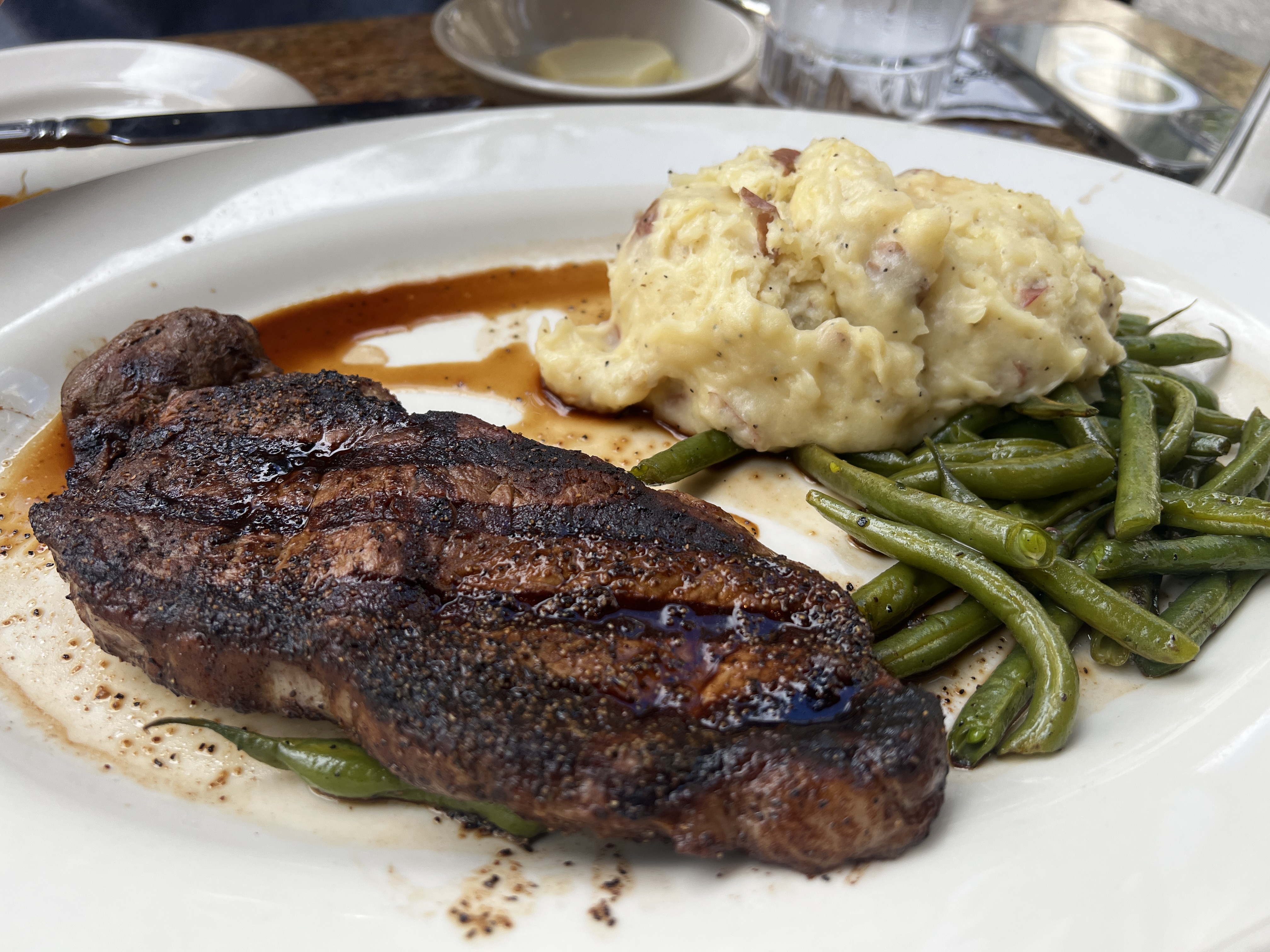식전빵이 나오는데 의외로 식전빵이 참 맛있습니다. 아이들이 먹고싶다던 망고주스와 뉴욕 스테이크, 에그 베네딕트, 슈림프와 디저트로 오리지널 치즈케이크 1조각을 추가했는데 100$ 못미치는 금액이 나왔네요. 넷이 갔는데 메뉴를 2개만 주문하기가 좀 그래서 3개를 주문했는데 마지막 메뉴는 거의 먹지 않고 포장해왔습니다. 여기서도 Box를 달라고 하면 테이크아웃용 박스를 주기 때문에 음식이 남으면 포장해오시면 됩니다. 하와이 물가도 비싼데 아이들 하나라도 더 먹이려면 굳이 버리고 올 필요는 없으니까요.