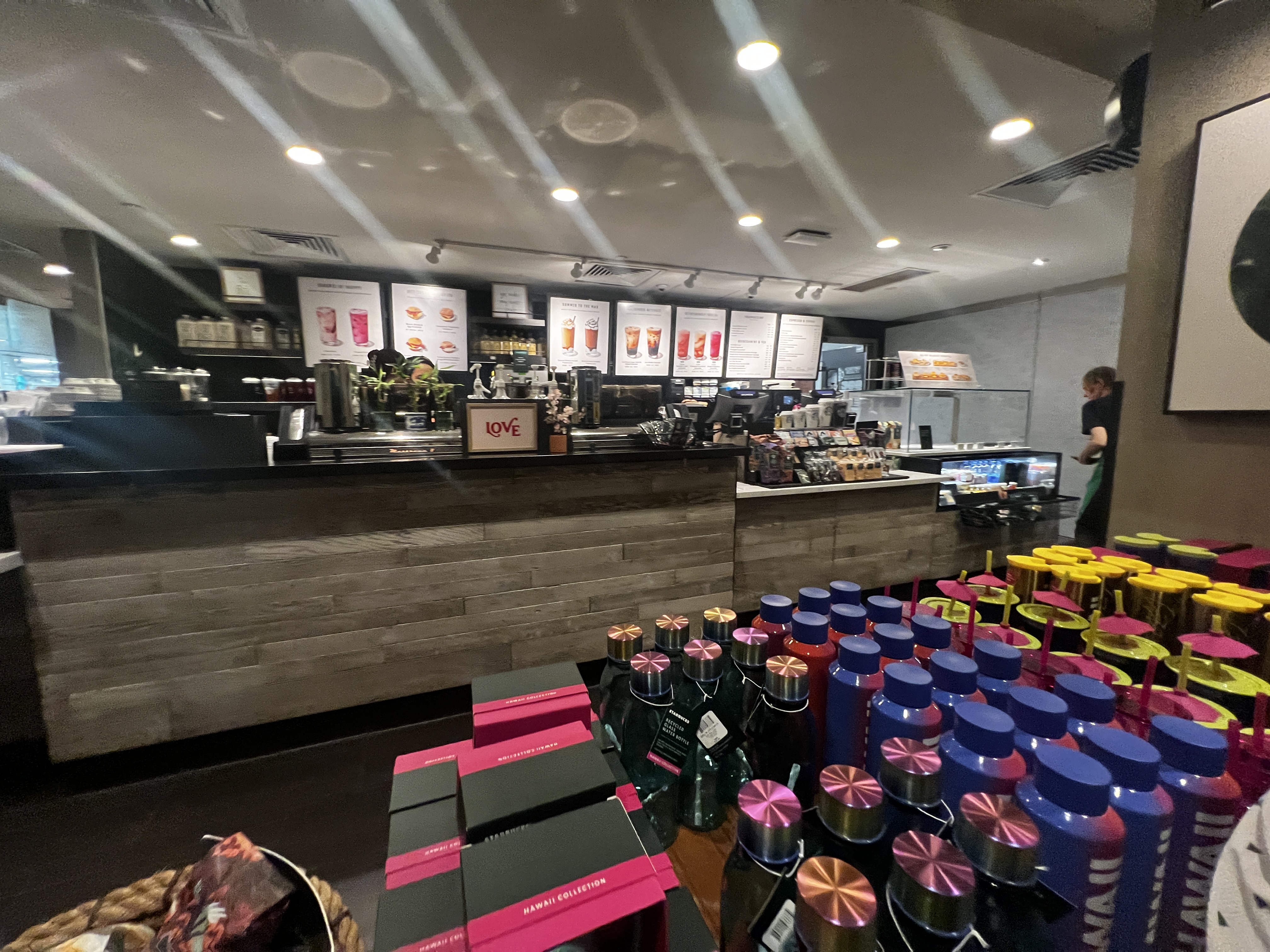마지막 날이라 아쉬운 마음에 와이키키 비치를 산책한 후, 가까운 스타벅스를 가 봅니다. 여행지에 가서 딱히 기념품을 사오는 편은 아닌데 스타벅스 머그컵 하나 구매해서 사용하는 것이 낙인지라 컵을 하나 구매해봅니다. Been There Series라는 이름으로 팔고있는 스타벅스 머그컵을 구매했는데, 나중에 보니 파인애플 모양의 지압 콜드컵이나 그 축소판 키링이 유명한 것이라고 하더라구요. 키링은 엄청 많았는데 카페에서 보니 구하기가 어려운 레어템이었다더라구요.