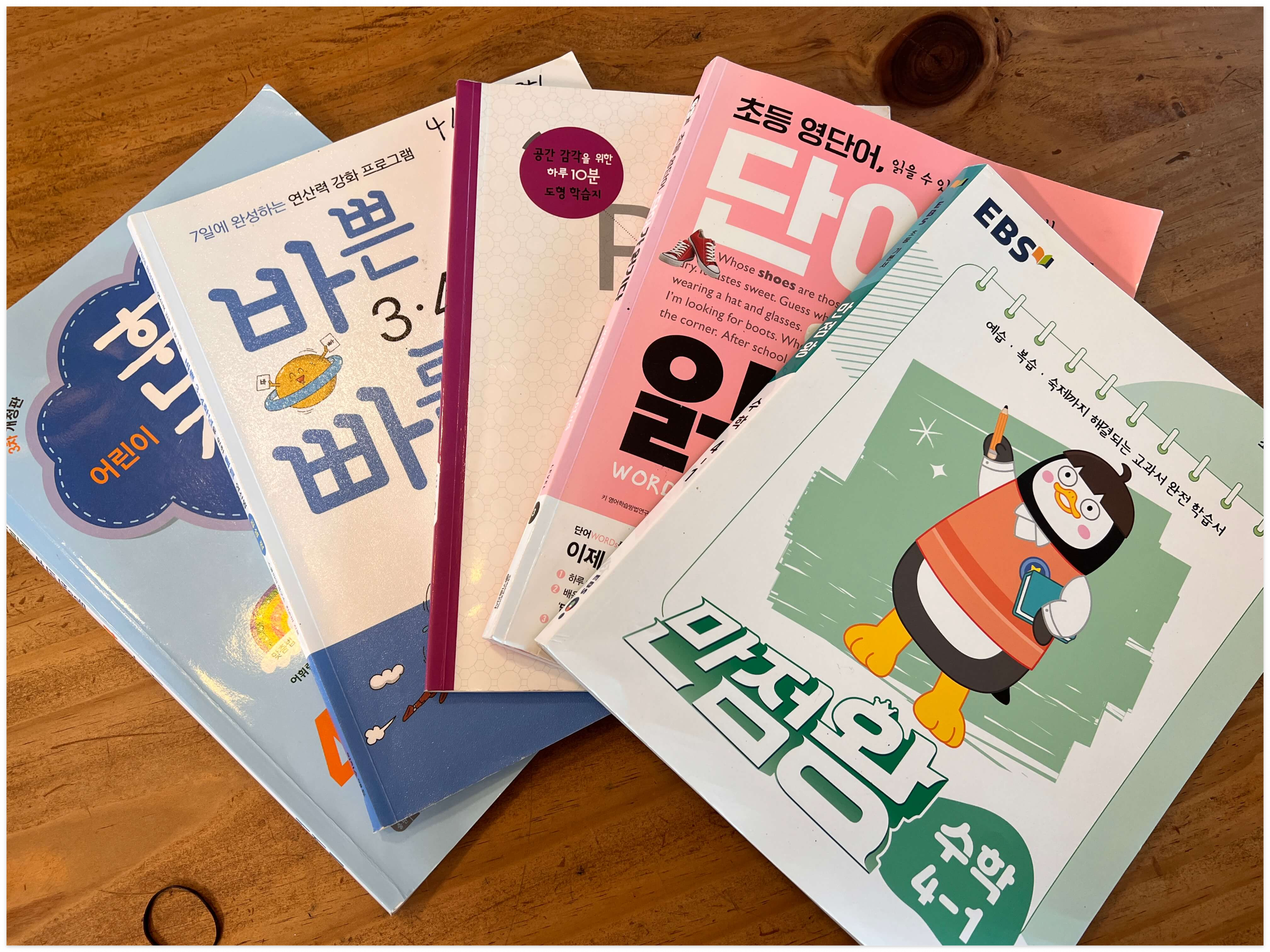 문제집들을 살펴보니 엄마가 바쁘다는 핑계로 꼼꼼히 봐주지 않았음에도 잘 풀어놓은 흔적들이 보입니다. 작년까지만 해도 매일매일 점검도 해주고 같이 풀어주기도 하고 옆에서 책을 읽기도 하는 등, 함께했었는데 올해는 상황이 여의치 않아 아이 혼자 공부를 주행해야 하는 경우가 많았습니다. 시간을 정해놓고 학원을 가거나 누가 도와주는 것도 아닌데, 집에서 혼자 꾸준히 노력한 점은 참 잘했네요.