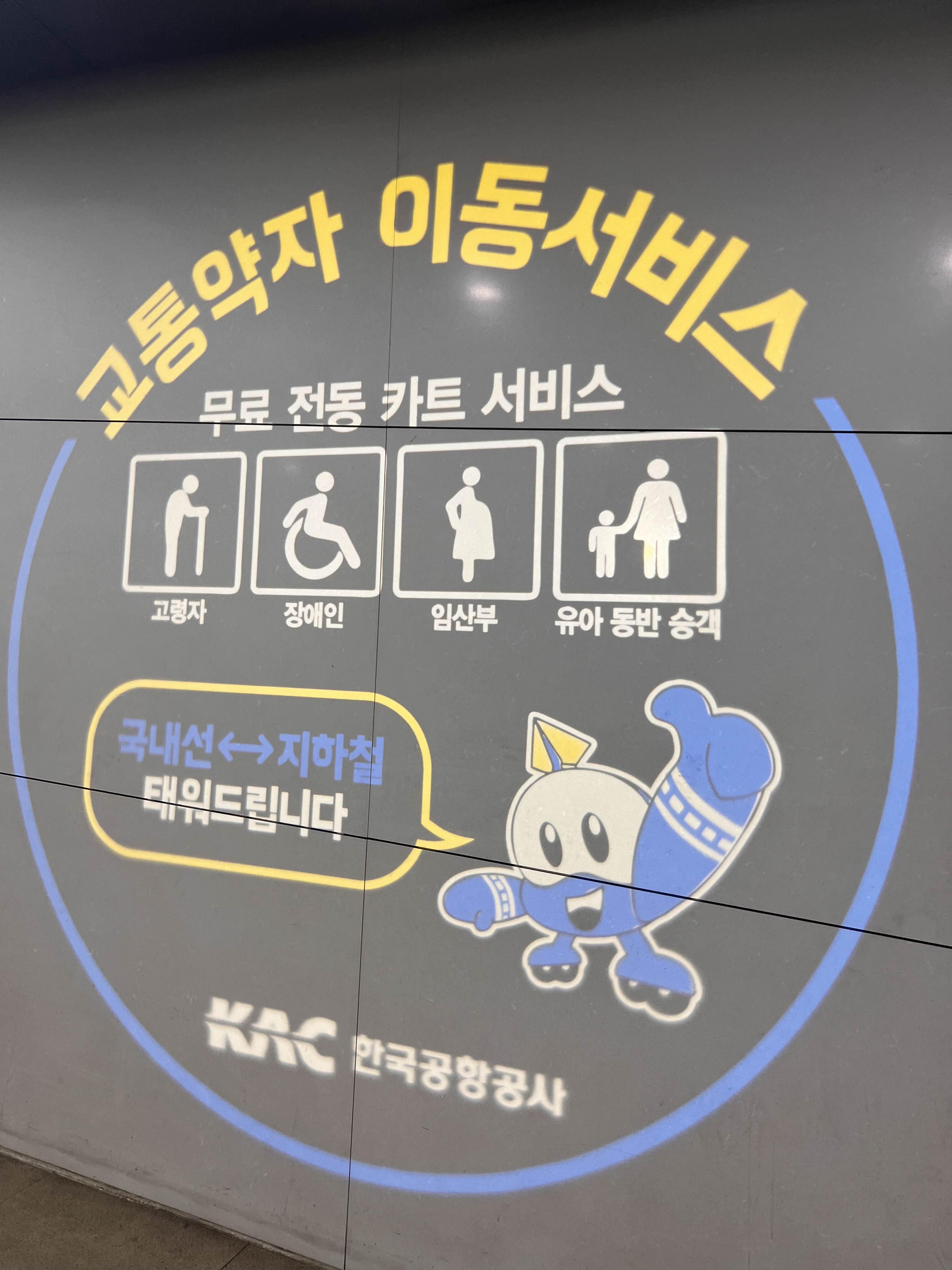 평일 아침시간이라 지하철에 사람이 너무 많았습니다. 생각해보니 월요일 아침 출근시간인 것을 깜빡했네요. 오히려 더 일찍 나왔으면 좋았을 텐데 말입니다. 공항에 도착하니 교통약자 이동서비스도 제공합니다. 이 순간만큼은 두 다리는 튼튼하지만 약자가 되고 싶었습니다.