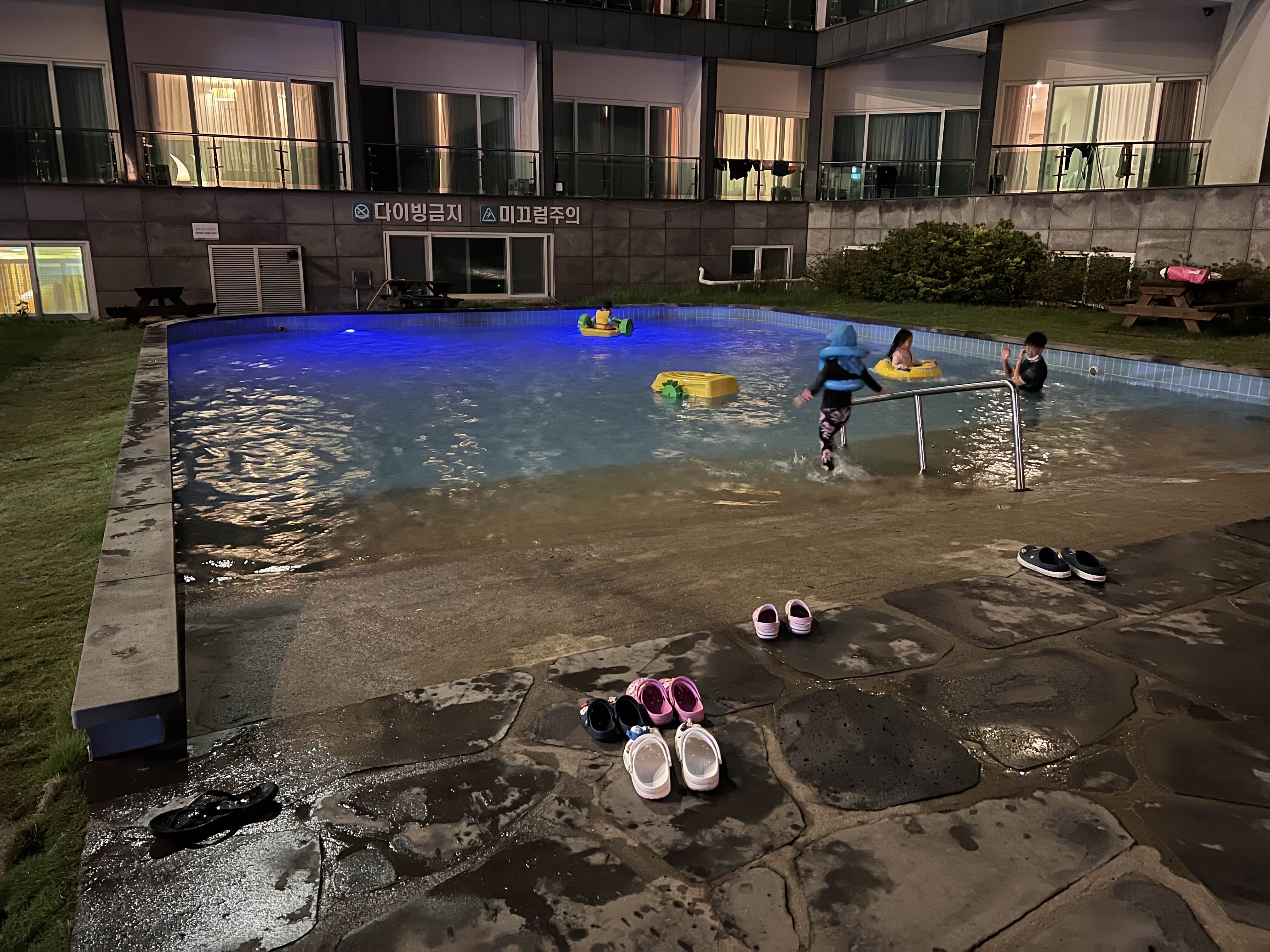 룸 컨디션은 그럭저럭 괜찮습니다. 화장실도 적당히 크고, 저희가 묵은 방은 수영장이 바로 보이는 곳에 위치해서 아이들은 수영하러 뛰어나가고 저는 방 안에서시원하게 에어컨 켜고 편히 일도 하고 업무도 보고 방 정리도 하고 아이들도 지켜볼 수 있습니다. 수영장은 유아풀과 성인풀이 나뉘어 있는데, 유아풀에는 작은 배도 떠 있습니다. 아주 어린 아가들은 탈 수 있을 것 같은데, 저희 초1은 한번 타보더니 물이 샌다(?)고 하더라고요.성인풀은 130cm부터 이용 가능이라고 되어 있는데 지금 120cm가 조금 넘는 초1이 들어가니 넉넉하게 잘 놉니다.