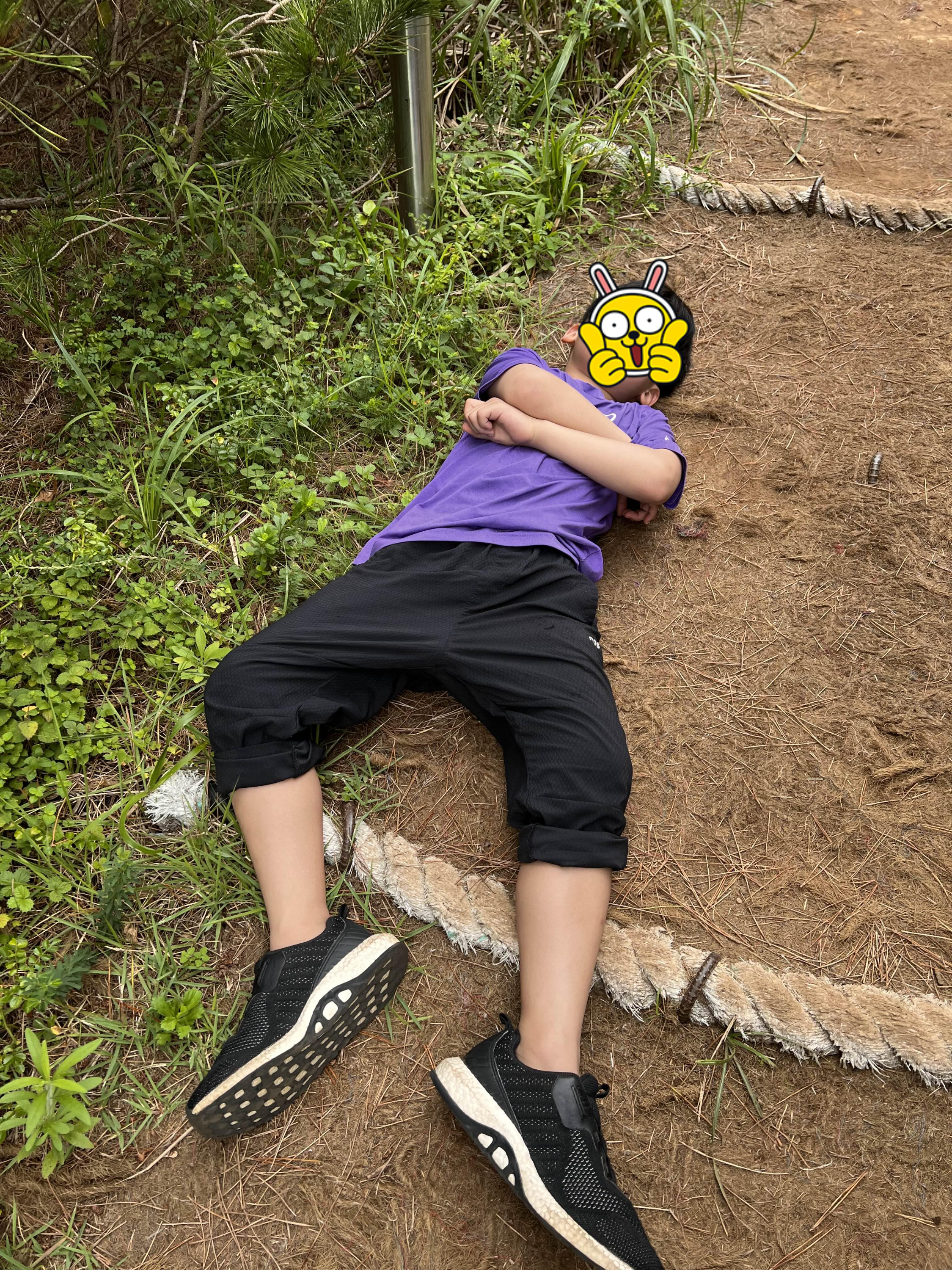 날씨가 생각보다 습하고 더워서 텀블러에 시원한 음료를 가득 챙겨갔음에도 불구하고 둘째님은 드러누워버립니다. 주변에 정말 아가아가한 아이들도 용감하게 올라가는데 초1인 둘째님이 길 한가운데 드러누워버리니 조금 챙피한 기분이 들어 그냥 두고 가기로 합니다(그랬더니 열심히 쫒아오네요).