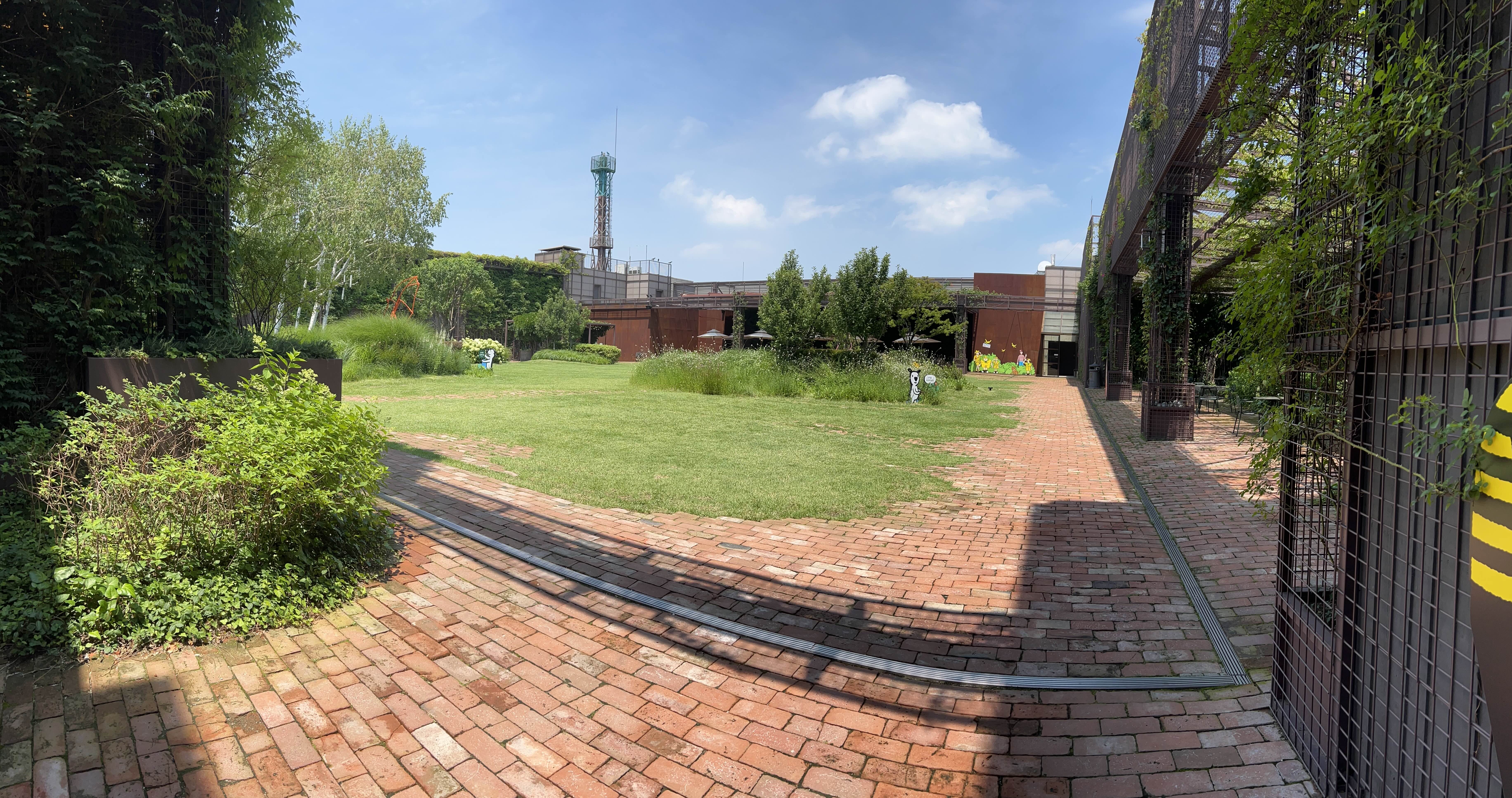 바로 옆 문을 열고 나가면 이렇게 옥상정원이 펼쳐집니다. 이날은 사실 더워도 너무 더운 날이라 밖에 나가서 살짝 구경만 한번 해보고 다시 들어왔어요. 등나무 밑에 마련된 테이블에서 이런저런 음료를 마시며 이야기하시는 분들도 꽤 계셨지만, 저는 너무 더웠던지라 다음을 기약해봅니다.